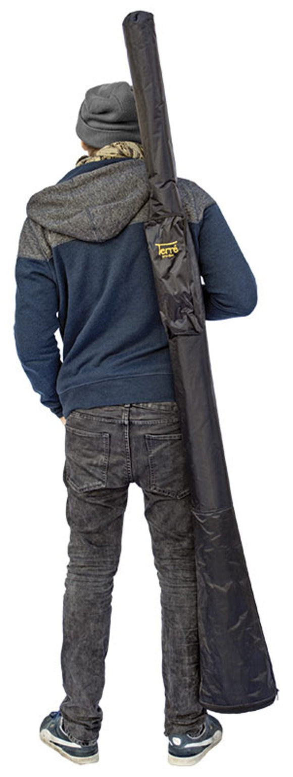 Made of canvas with stretcher belt Black color It has a flap zipper on top Suitable for didgeridoo 69" length 9" diameter