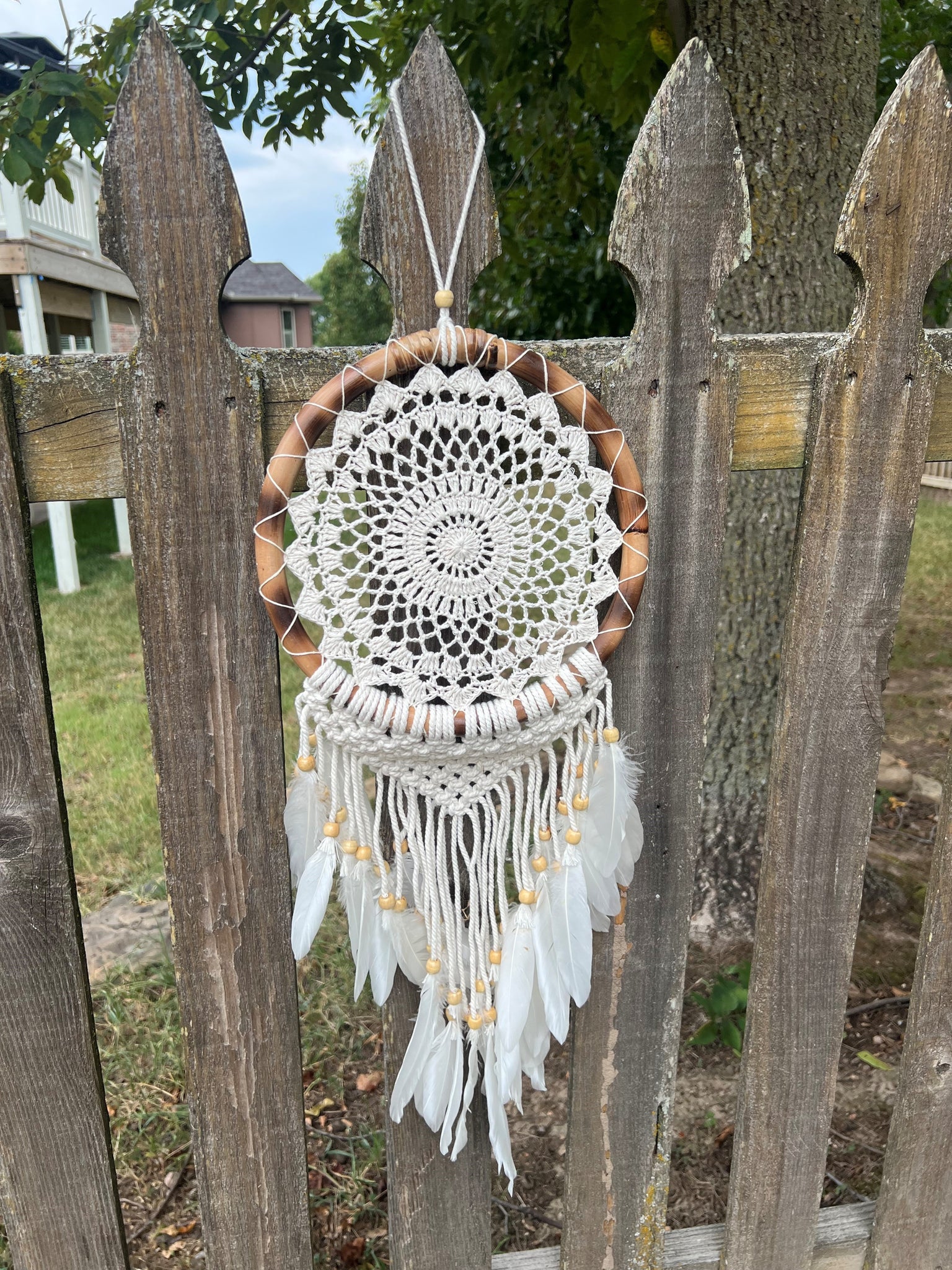 Dream Catcher Rattan Mandala Crochet Net White – 27" x 10" Handmade Bohemian Wall Hanging for Bedroom & Home Decor