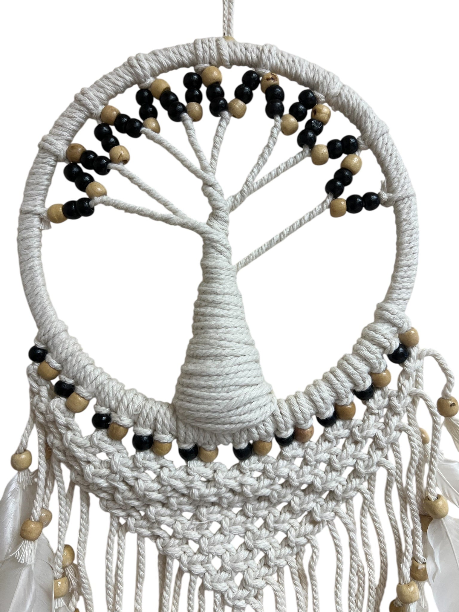 Dream Catcher Rattan Tree of Life White – 9 Inch Handmade Bohemian Wall Hanging for Bedroom & Home Decor