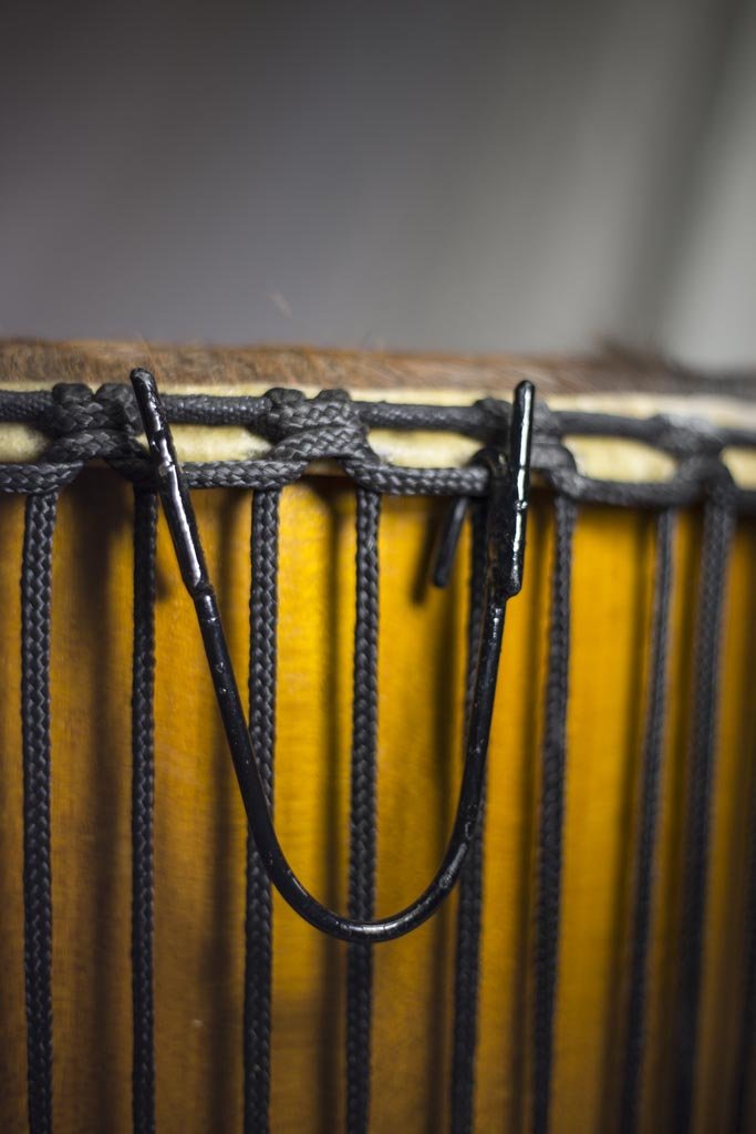 • Dundun made of Cocos-hardwood with cow skin covers and mahogany veneer, also called Dundun or Doun Doun. Traditional West African instrument.
