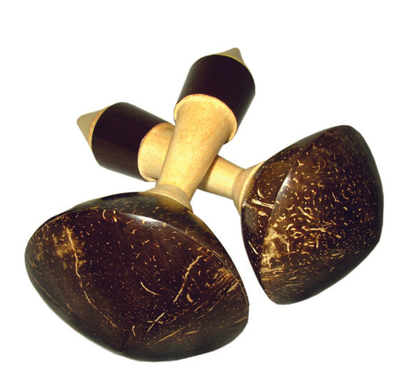 Each pair showcases the natural beauty of coconut shells, providing a unique aesthetic that enhances both their visual and auditory appeal.