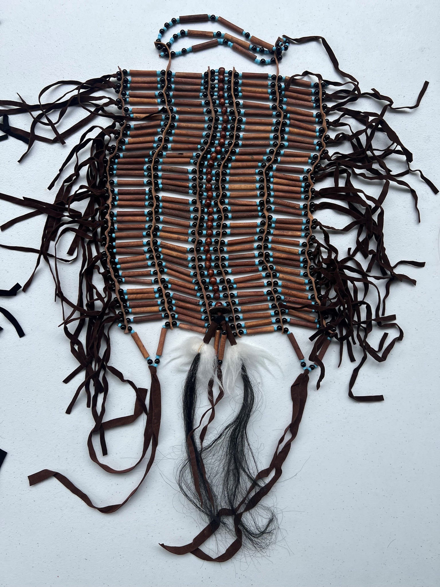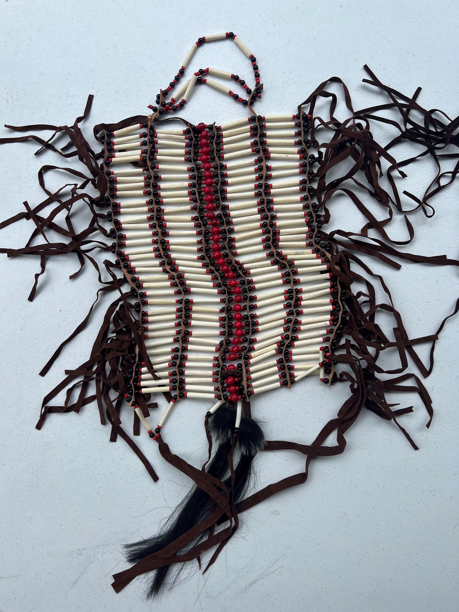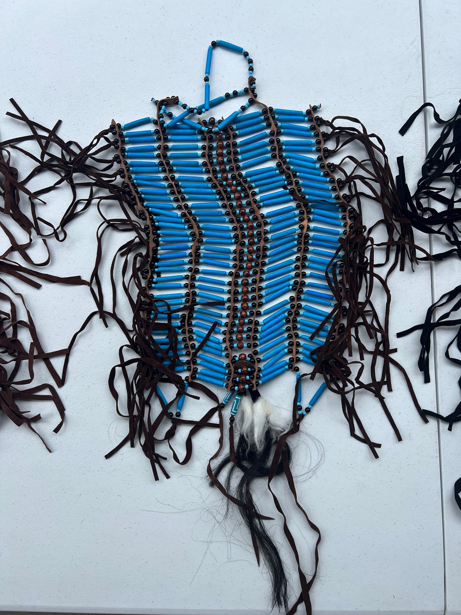 • Stunning Design: This 14-inch Indian beaded breast chest plate showcases a beautiful blend of three vibrant colors, perfect for making a statement.